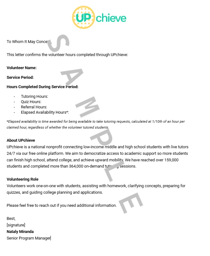 Want to see an example of one of our volunteer hour verification letters? Check it out heree!