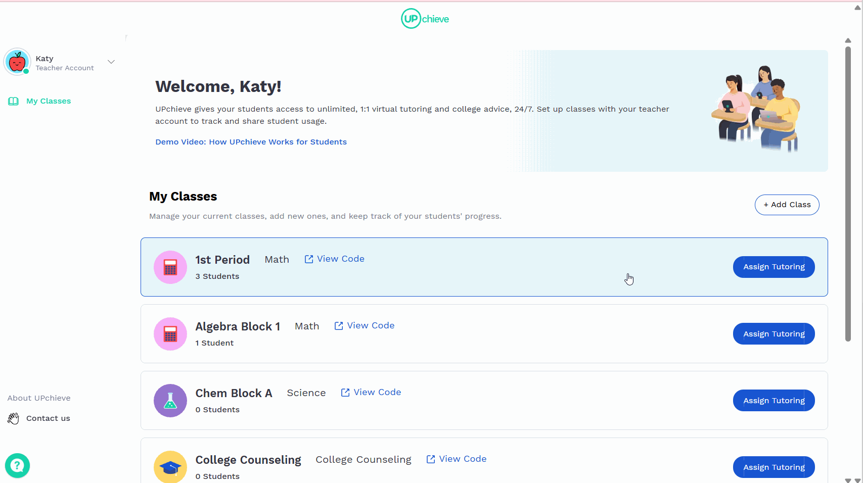 Find the class the student is in and click on it